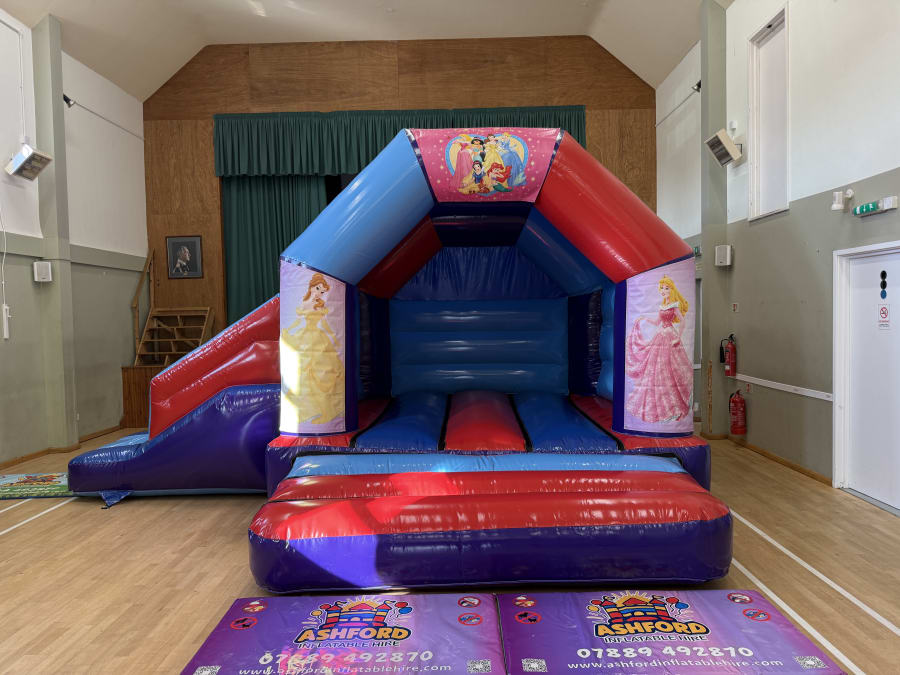 Step into a magical fairytale with our beautiful Disney Princess themed combo bouncy castle with slide!