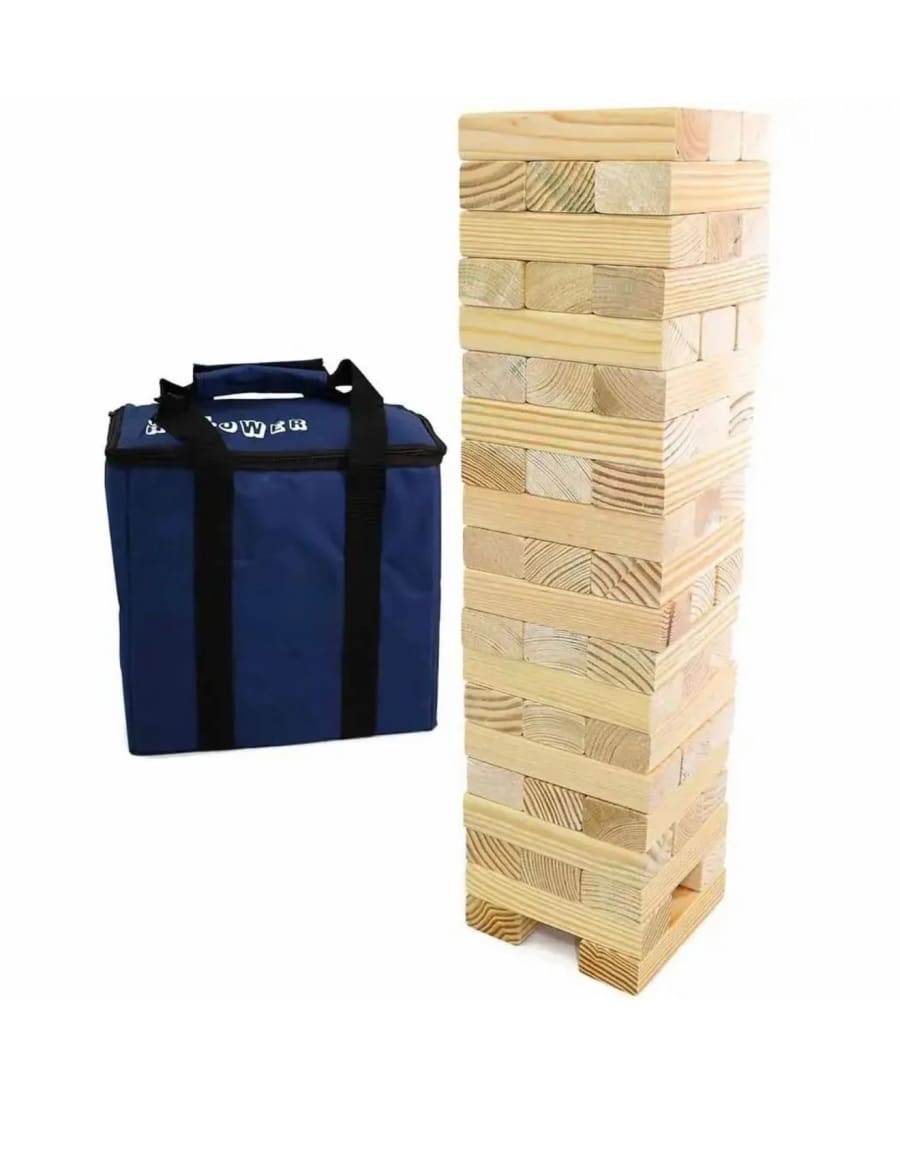 Our set is made from solid wooden blocks, designed for stability and durability while still being easy to handle. It’s suitable for outdoor use on grass, making it the perfect addition alongside our bouncy castle hire in Ashford or as part of a garden games setup.